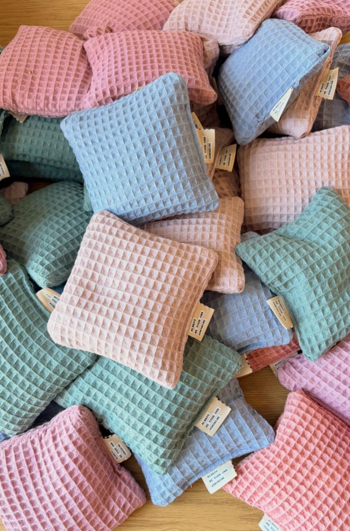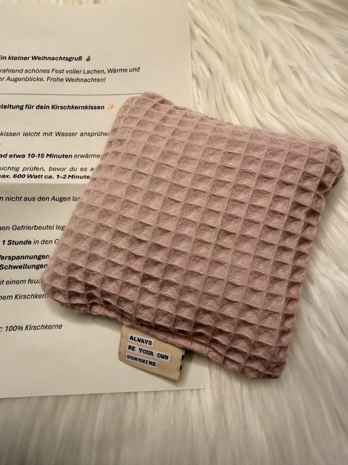 Heute war in beiden Kalendern jeweils ein genähtes Kirschkernkissen. Die Teilnehmerin macht, wie eine weitere Person und ich, bei beiden Kalendern mit. Sie hat mir das Gesamtfoto zukommen lassen. Da sieht man auch, dass es mehrere Farben waren. Ich hatte altrosa.
