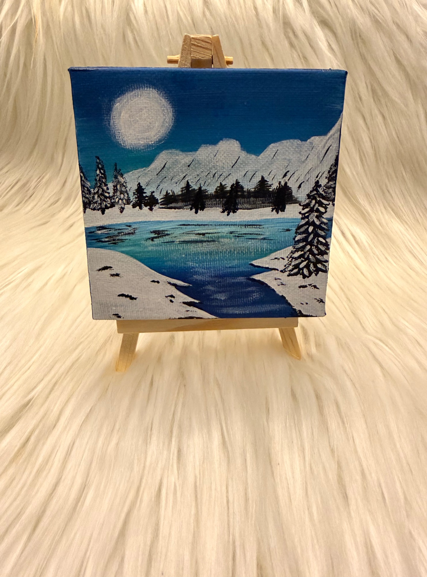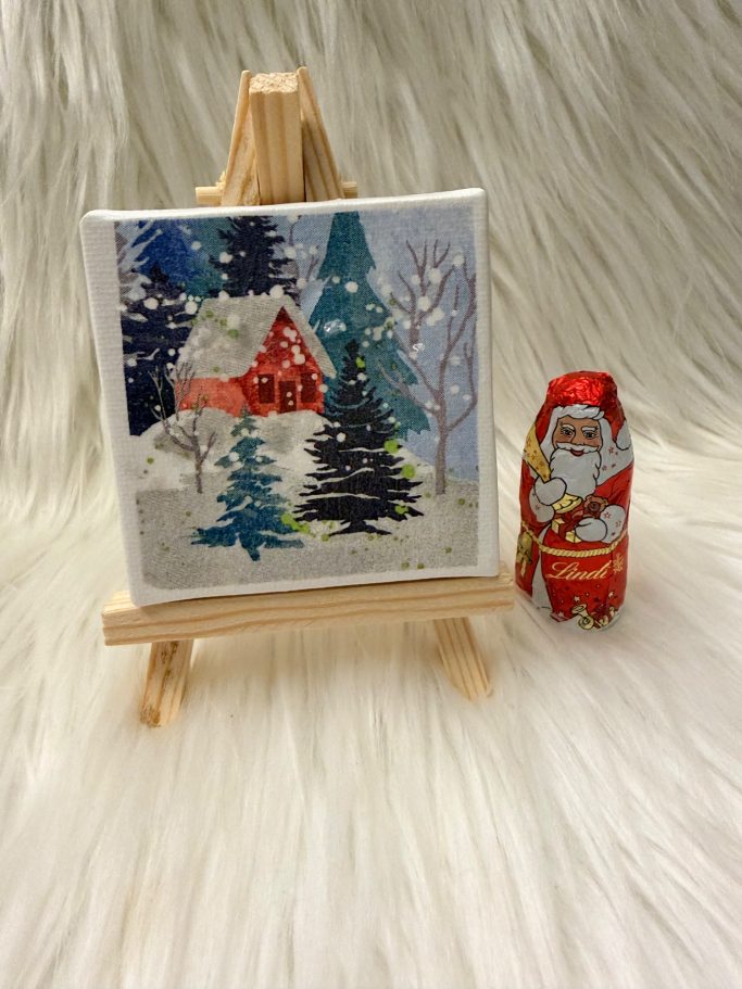 In der Stadtverwaltungsedition gab es heute gebrannte Mandeln. Im gemischten Kalender gab es heute ein gemaltes Mini-Winterlandschafts-Bild auf einer Staffelei.