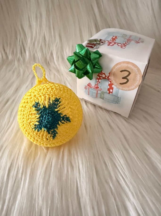 Im Stadtverwaltungs-Kalender war eine gehäkelte Weihnachtsbaumkugel.