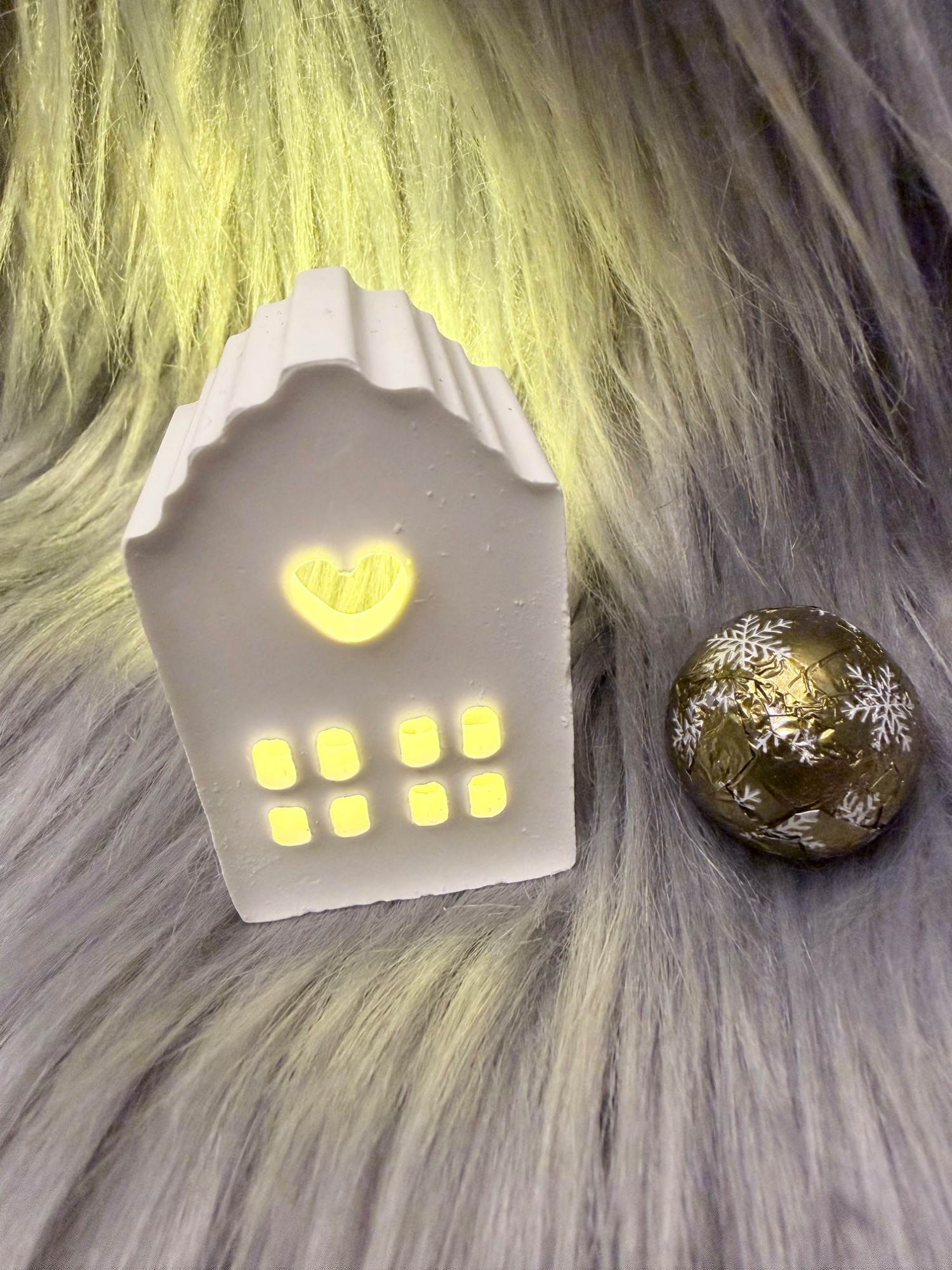 Im gemischten Kalender war ein Häuschen mit Licht aus gegossener Kaltkeramik.