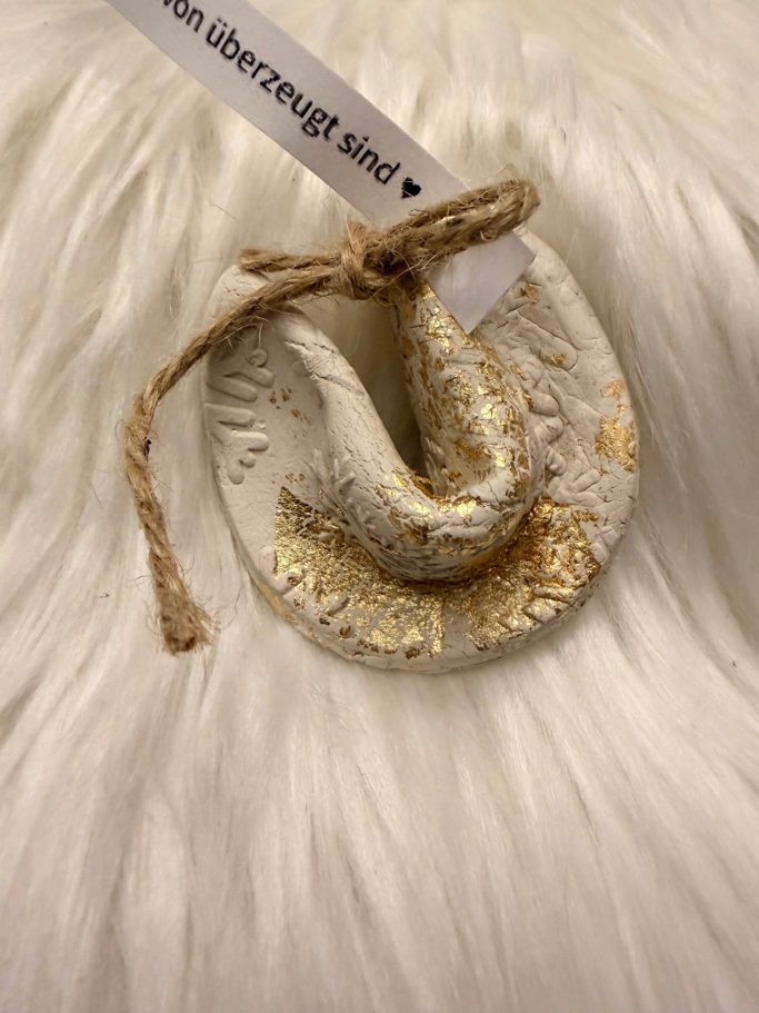 Im gemischten Kalender gab es ebenfalls einen Weihnachtsbaumanhänger aus (evtl.) Salzteig oder Ton.