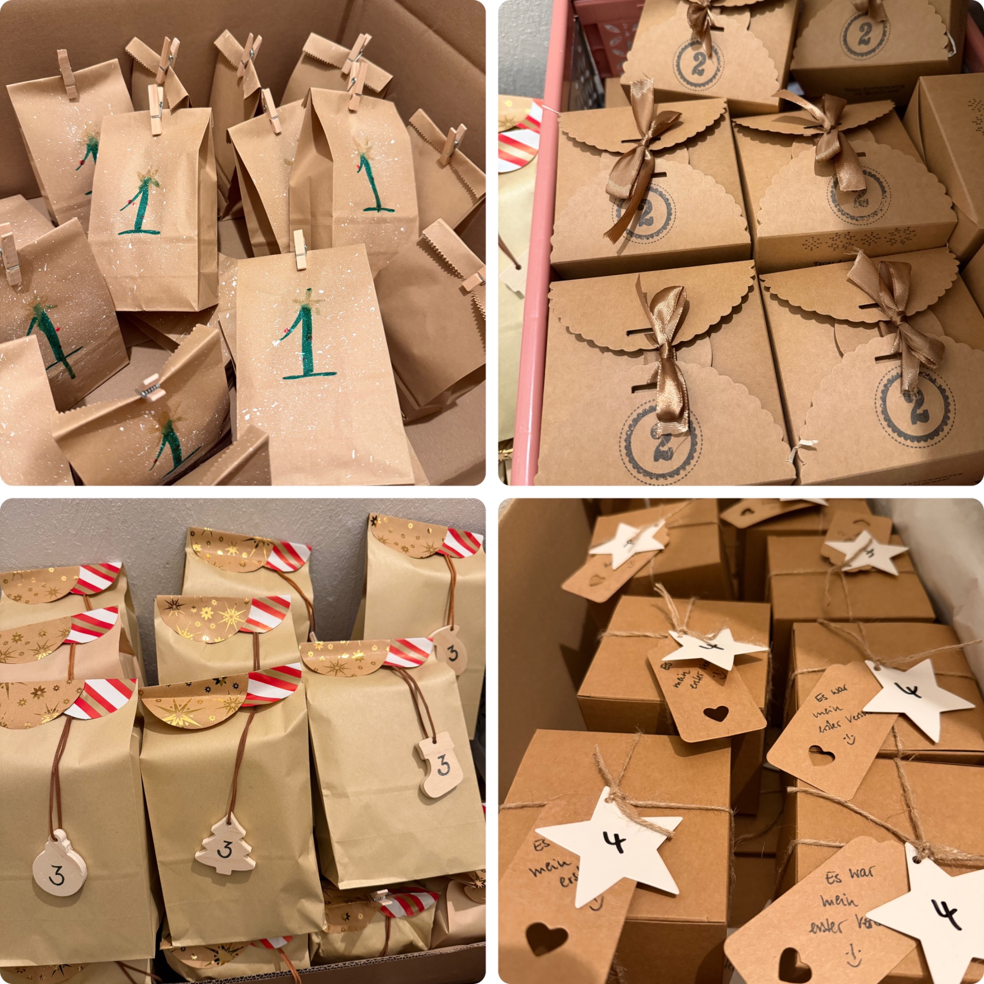 Heute, am 25.11.2024, haben alle Teilnehmer ihren Beitrag pünktlich abgegeben. Ich habe alle sortiert. Hier sind die hübschen Pakete- Zahl 1-24 sowie die Zahlen vom Springer.