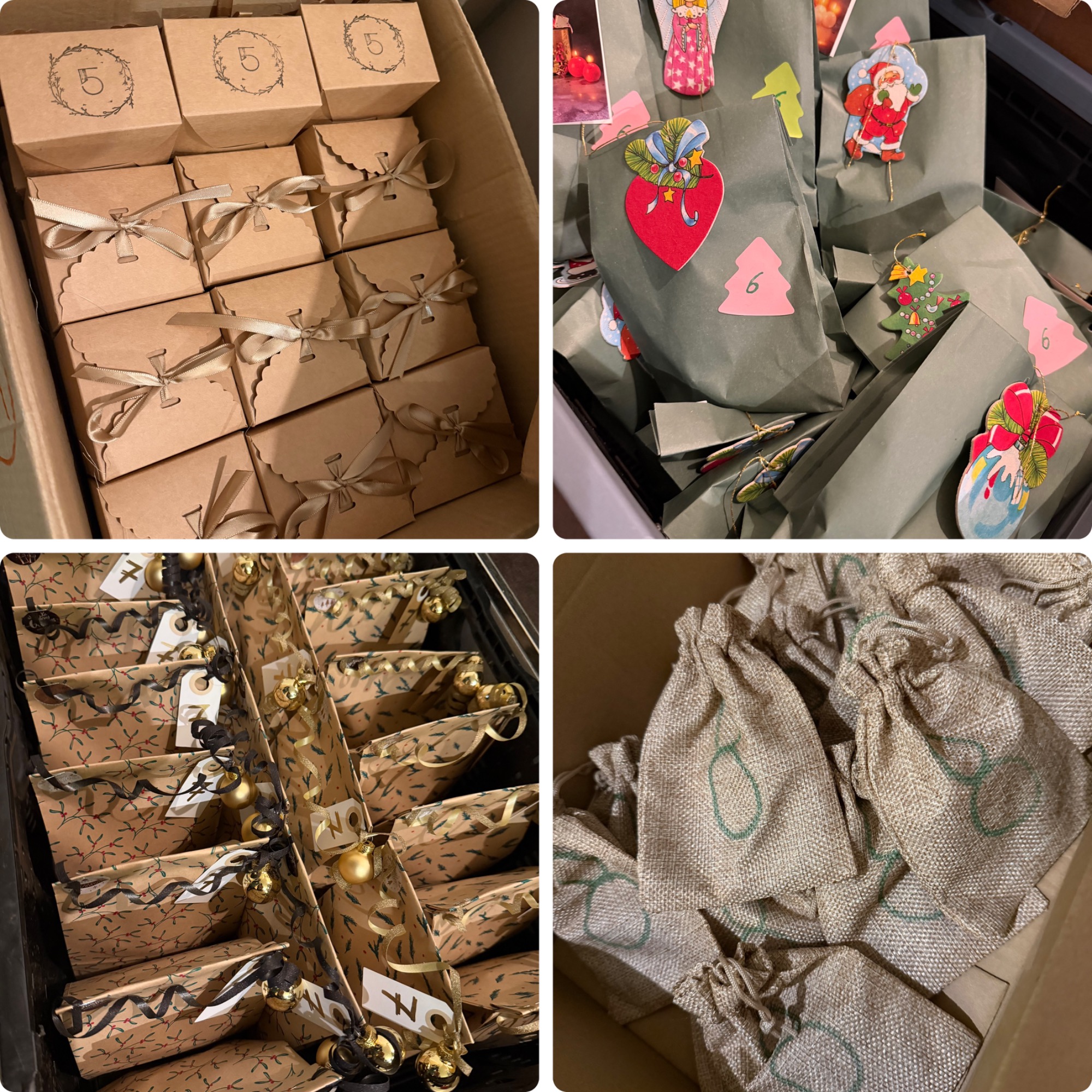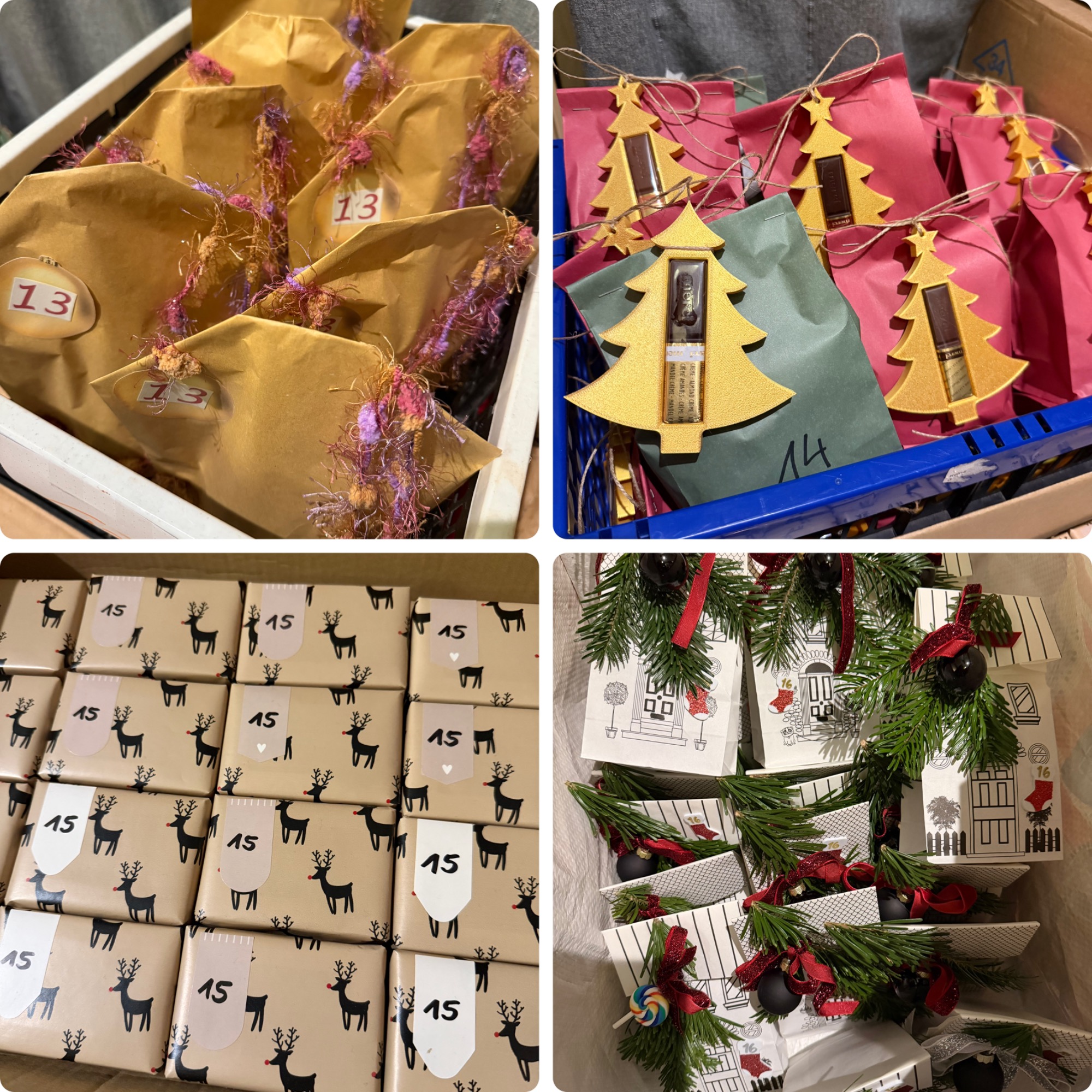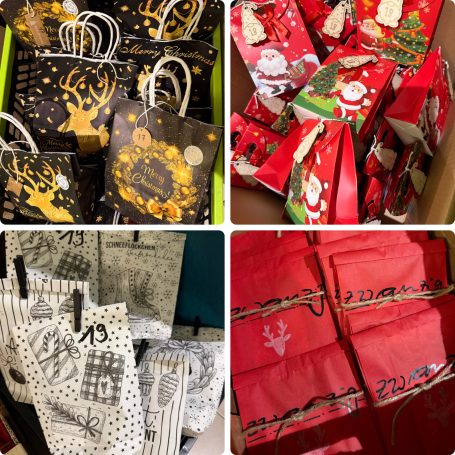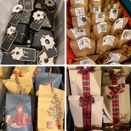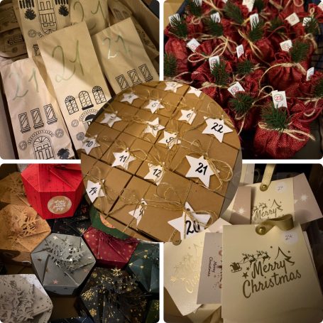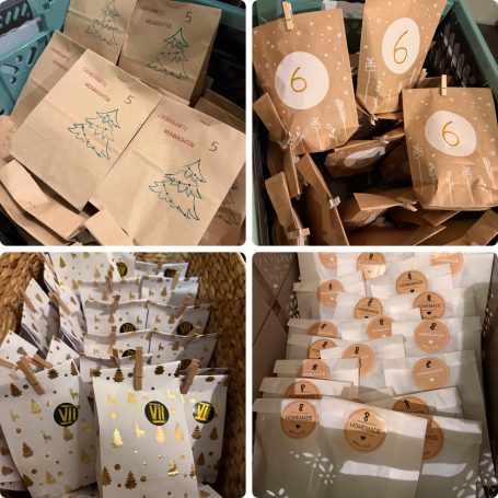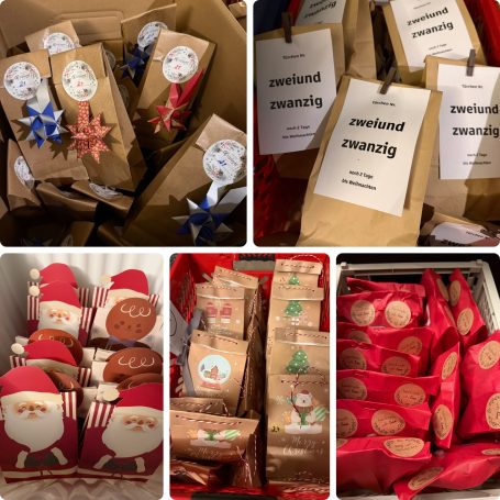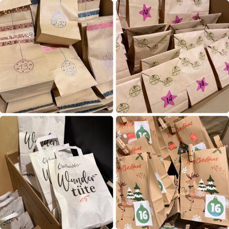 Am 25.11.2024 ist Abgabefrist für die ersten Päckchen. Dann wird alles sortiert und für jeden ein fertiger Adventskalender gepackt, der dann in den nächsten zwei Tagen abgeholt werden kann.