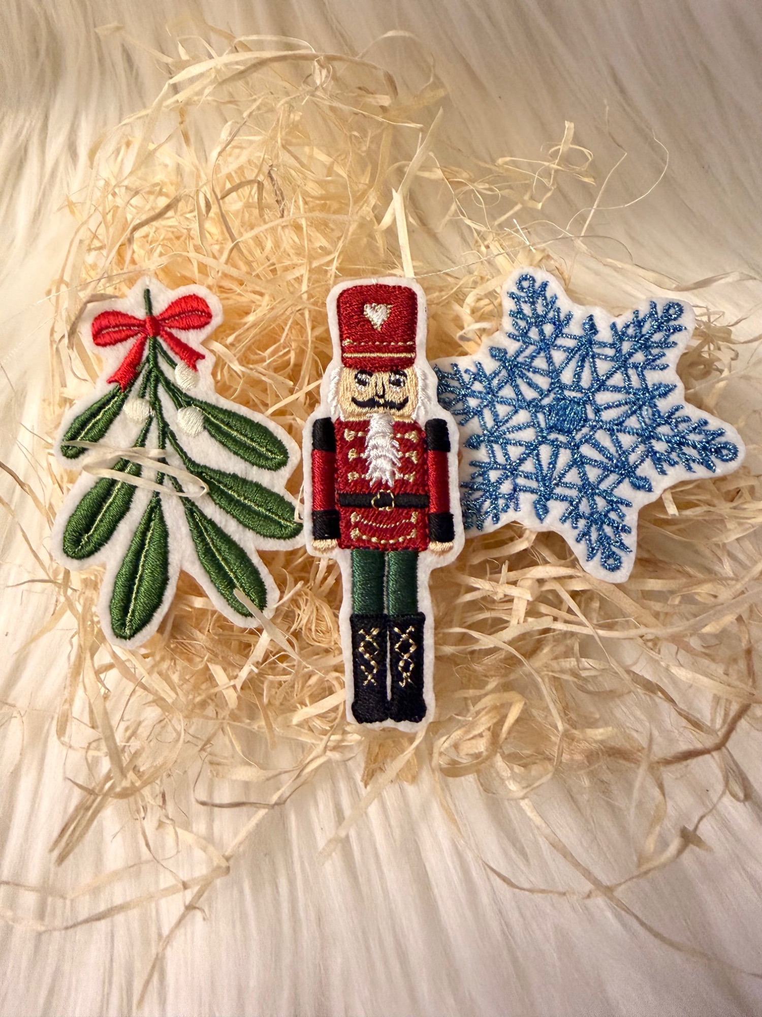 Im gemischten Kalender waren gestickte Weihnachtsbaumanhänger.
