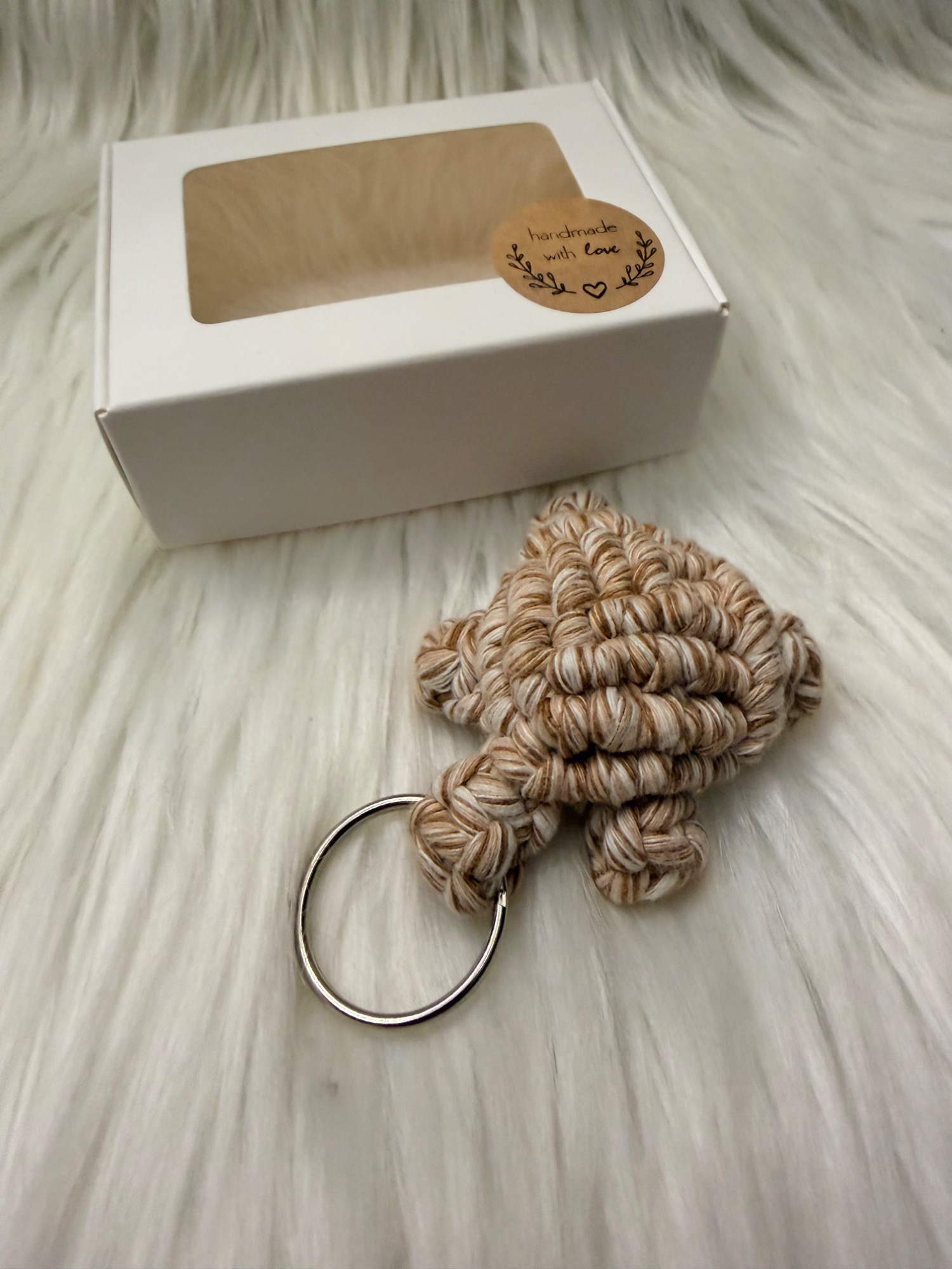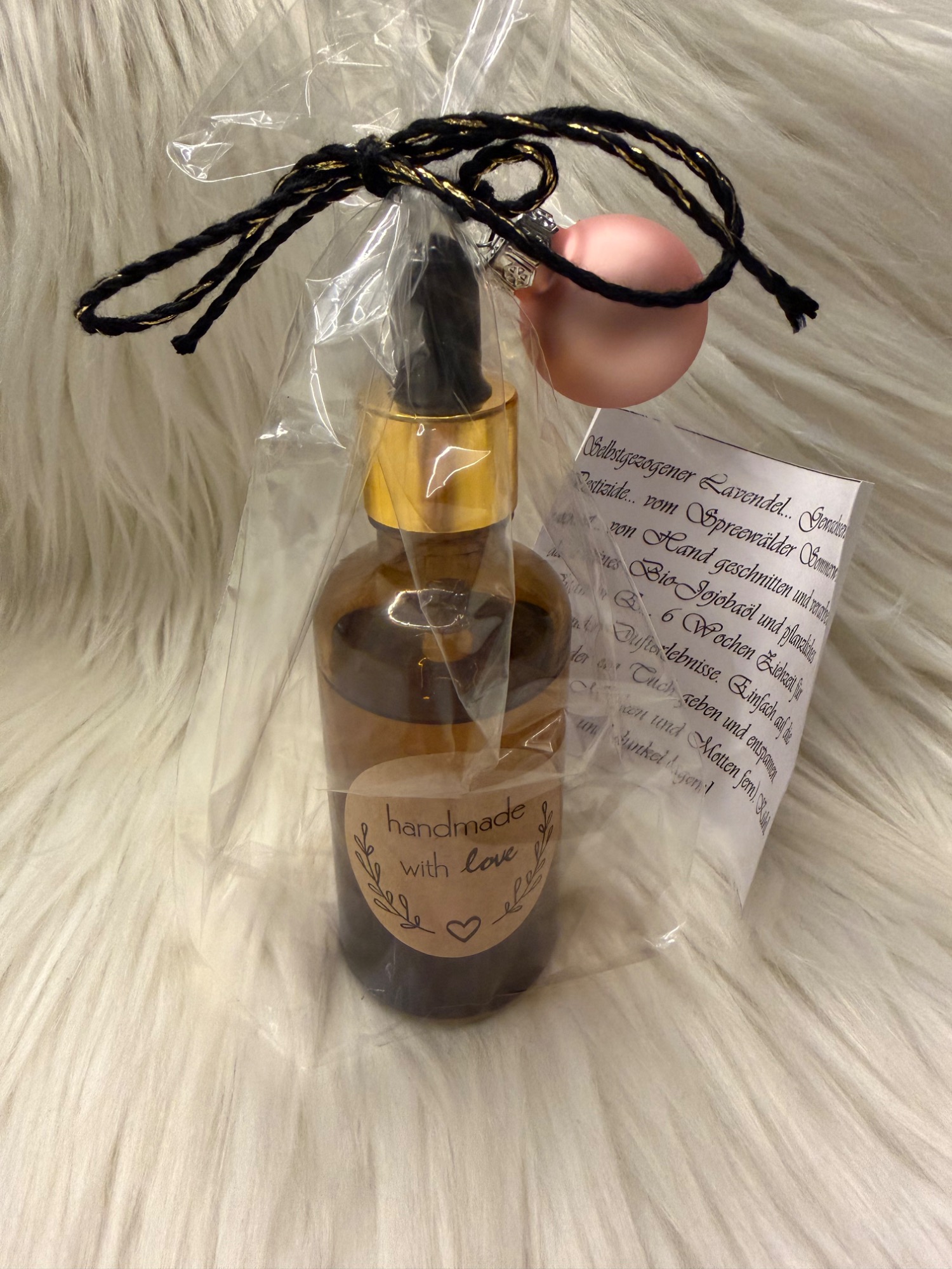 Heute war ein Fläschchen Glück mit Anleitung und Bedeutung drin. In Stadtverwaltungs-Edition gab es einen Makramee-Schlüsselanhänger.