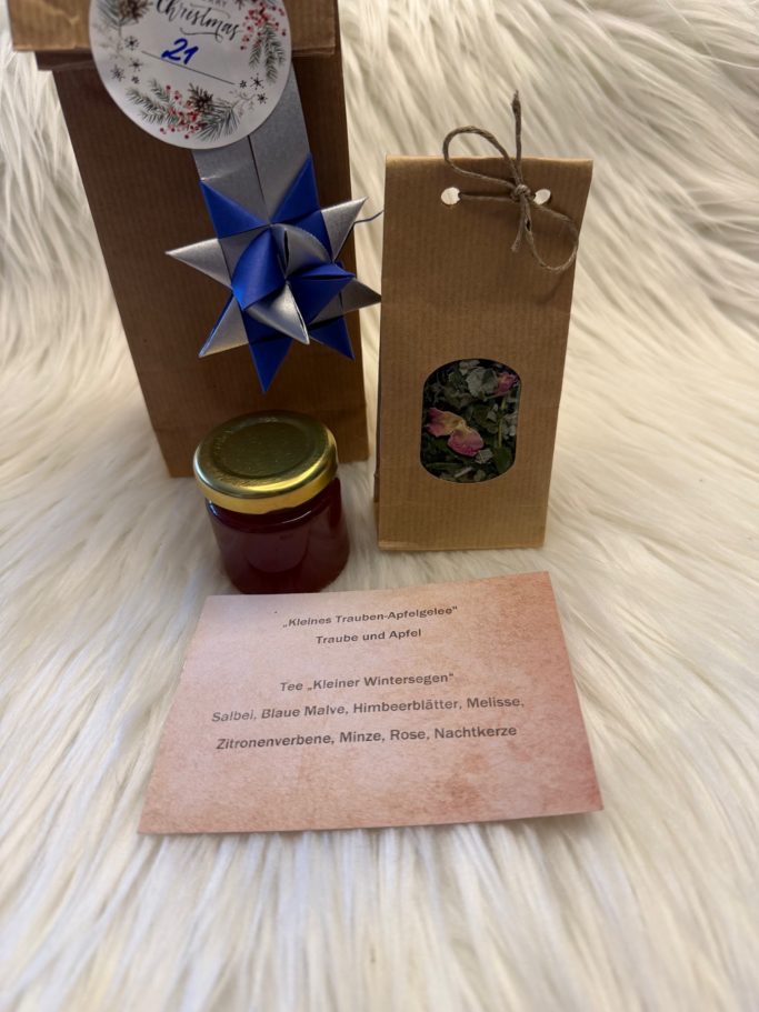 Heute waren im Türchen 5 ein Lippenbalsam und ein Entspannungs-Roll-On sowie in der Stadtverwaltungs-Edition eine Wintermarmelade.
