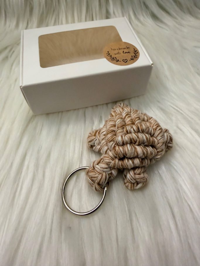 In der Stadtverwaltungsedition war eine Schildkröte aus Makramee als Schlüsselanhänger. Im gemischten Kalender war im größten Päckchen in diesem Jahr ein weihnachtlicher Türstopper.